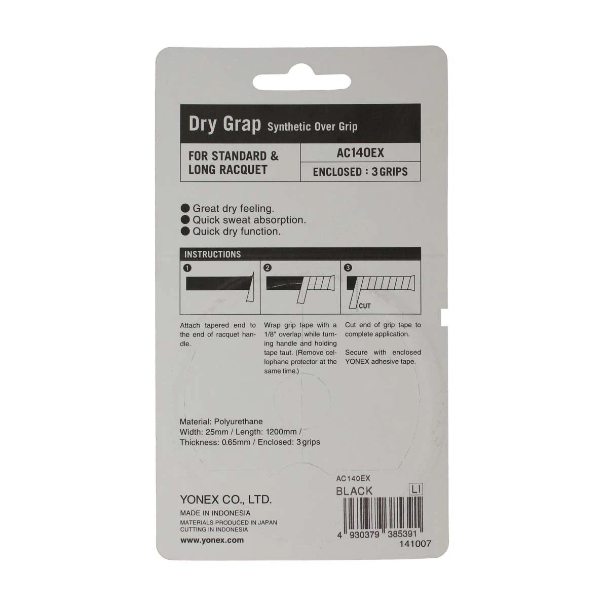 The Yonex Dry Grap provides great dry feel and quick sweat absorption throughout your game.Â